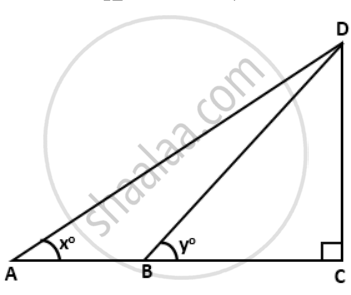 If tan x° = `(5)/(12) . tan y° = (3)/(4)` and AB = 48m; find the length CD.