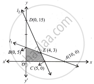 The coordinates of O, C, E and B are (0, 0) (5, 0), (4, 3) (solving x + 2y = 10, 3x + y = 15) and (0, 5) respectively.