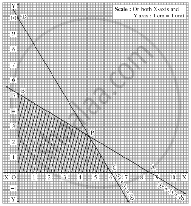 The vertex P is the point of intersection of the lines 3x + 5y = 26 .....(1)
