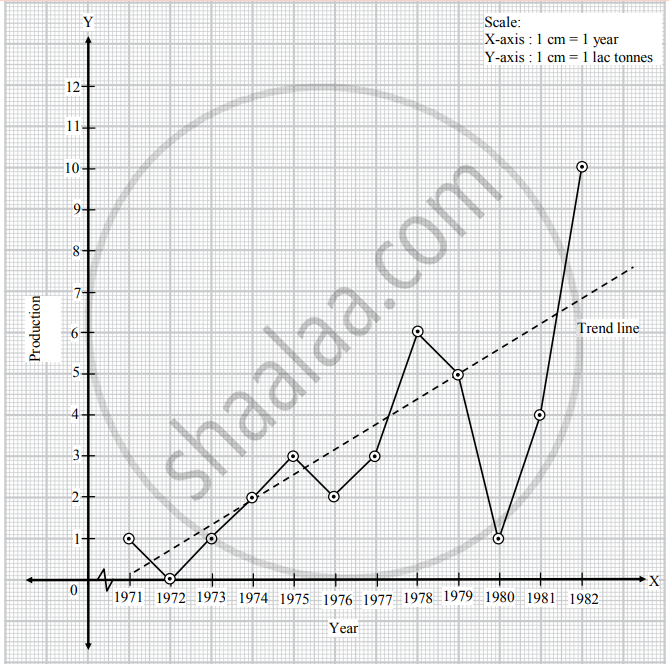 Taking year on X-axis and production on Y-axis, we plot the points for production corresponding to years. Joining these points we get the graph of time series. We fit a trend line as shown in the graph.