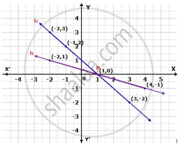 Plotting points (1, 0), (-2, 1) and (4, -1) joining them, we get a line l1 which is the graph of equation (i).
