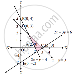 2x + y ≥ 4, x + y ≤ 3, 2x – 3y ≤ 6