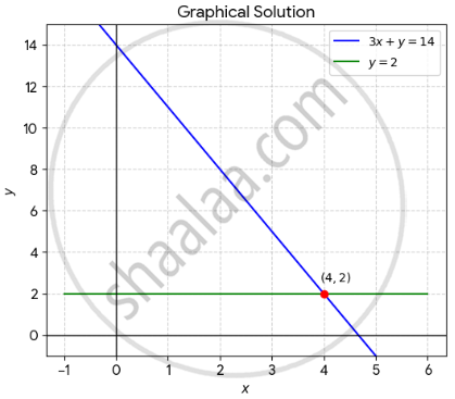 Solve the linear equations 3x + y = 14 and y = 2 graphically.