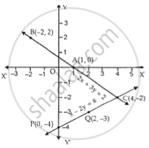 Now, plot the points P(0, –4) and Q(2, –3). The point C(4, –2) has already been plotted. Join PQ and QC and extend it on both ways. Thus, line PC is the graph of x – 2y = 8.