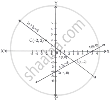 Solve graphically: 2x + 3y = 2, x – 2y = 8