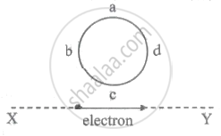 An electron moves on a straight line path XY as shown. The abed is a coil adjacent to the path of electron. What will be the direction of current, if any, induced in the coil?