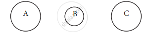 Sphere A and B are made of same material. Sphere C is made of a different material. Spheres A and C have equal radii. The radius of sphere B is half that of A. The density of A is double that of C.