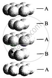 | (ii) द्विविमा में षट्कोणीय निविड संकुल | (b) प्रत्येक चौथी परत में गोलों का पैटर्न पुनरावृत्त होता है। |