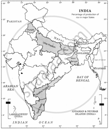 - Construct a pie diagram to show the percentage of area under rice in each State.