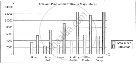 - Construct a multiple bar diagram to show the area under rice in each State.