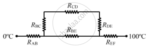 The three rods shown in figure have identical geometrical dimensions. Heat flows from the hot end at a rate of 40 W in the arrangement (a). Find the rates of heat flow when the rods are joined as in arrangement (b) and in (c). Thermal condcutivities of aluminium and copper are 200 W m−1°C−1 and 400 W m−1°C−1 respectively.