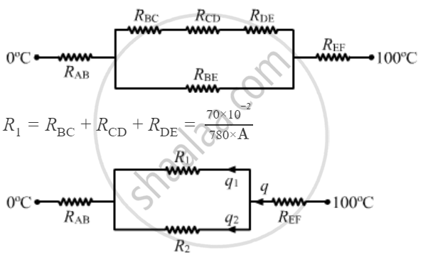 Suppose the bent part of the frame of the previous problem has a thermal conductivity of 780 J s−1 m−1 °C−1 whereas it is 390 J s−1 m−1°C−1 for the straight part. Calculate the ratio of the rate of heat flow through the bent part to the rate of heat flow through the straight part.