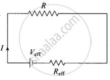 Then current through R is given by `I = (V_"eff")/(R_"eff" + R)`