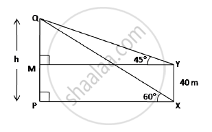 `tan45^@=(QM)/(MY)=>1=(h-40)/(PX) " ...."(MY=PX)`