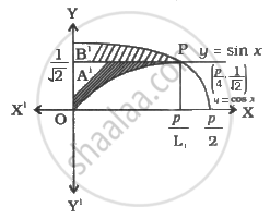 A = `[y sin^-1 y - int 1/sqrt(1 - y^2) * ydy]_0^(1/sqrt(2)) + [y cos^-1 y + int 1/sqrt(1 - y^2) y dy]_(1/sqrt(2))^1`