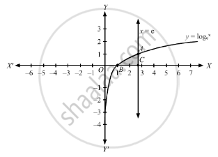 \[A = \int_0^1 \left( x_1 - x_2 \right) d y ..........\left(\text{ where, }x_1 = e\text{ and }x_2 = e^y \right)\]