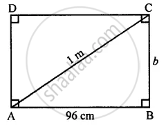The diagonal of a rectangular board is 1 m and its length is 96 cm. Find the area of the board.