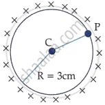 A thin spherical shell is charged by some source. The potential difference between the two points C and P (in V) shown in the figure is ______.