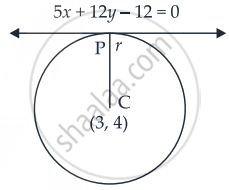 Given equation of the line is 5x + 12y – 12 = 0 and the centre is (3, – 4)