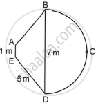 The figure alongside represents the horizontal cross-section of a pond. ABDE is an isosceles trapezium in which AE = 1 m, ED = 5 m, BD = 7 m. BCD is a semicircle on diameter BD. The sides of the pond are vertical and the depth of the water in the pond is 50 cm. Find the area of the sides in contact with water.
