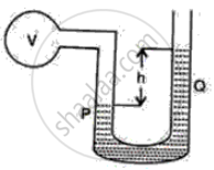 The following figure shows a manometer containing a liquid of density p. The limb P of the manometer is connected to a vessel V and the limb Q is open to atmosphere. The difference in the levels of liquid in the two limbs of the manometer is h as shown in the diagram. The atmospheric pressure is P0.