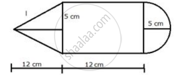 The given figure shows the cross-section of a cone, a cylinder and a hemisphere all with the same diameter 10 cm and the other dimensions are as shown. Calculate: the density of the material if its total weight is 1.7 kg