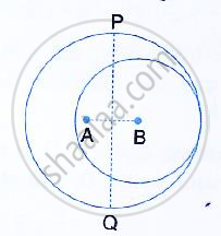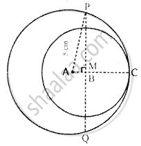 The given figure shows two circles with centres A and B; and radii 5 cm and 3 cm respectively, touching each other internally. If the perpendicular bisector of AB meets the bigger circle in P and Q, find the length of PQ.
