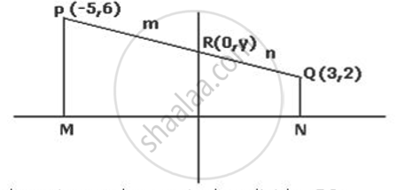 The line joining P (-5, 6) and Q (3, 2) intersects the y-axis at R. PM and QN are perpendiculars from P and Q on the x-axis. Find the ratio PR: RQ.