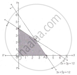 Intersection point of lines 3x + 2y = 12 and 2x + 3y = 12 is C `(12/5, 12/5)`.