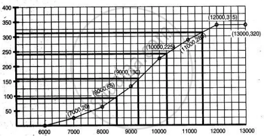From the graph, the corresponding x co-ordinate is 10,300 (approx.)