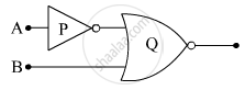(i) Write the truth tables of the logic gates marked P and Q in the given circuit.