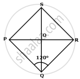 ⇒ `∠"PQO" = (1)/(2) ∠"POQ" = (1)/(2) xx 120° = 60°`