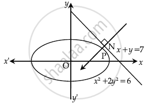 Let P`(sqrt(6)cosθ, sqrt(3)sinθ)` be a point on (i) which is closest to the line x + y = 7.
