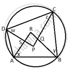 ∠ARB = 180° - (x + y) and ∠CPD = 180° - (z + w)