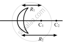 Radii of curvature of a lens, (R1) = +20 cm and R2 = +30 cm
