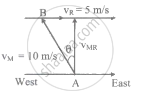 The speed of swimmer in still water is 10 m/s. The speed of river water is 5 m/s and is flowing due east. If he is standing on the south bank and wishes to cross the river along the shortest path, the angle at which he should make his strokes w.r.t. north is given by: ____________.