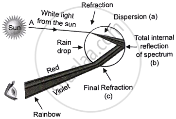 OR - Draw a ray diagram to show the formation of a rainbow. Mark on it points (a), (b) and (c) as given below: (2)