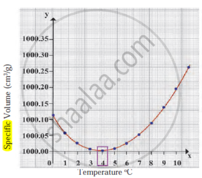 Observe the following graph. Considering the change in volume of water as its temperature is raised from 0°C, discuss the difference in the behaviour of water and other substances. What is this behaviour of water called?