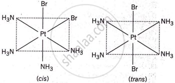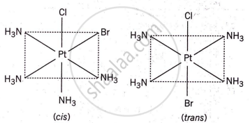 - Geometrical isomerism: The two chloride ions (Cl−) can be arranged in two possible ways around the central platinum ion. (cis and trans)