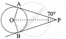 The two tangents from an external points P to a circle with centre at O are PA and PB. If ∠APB = 70° then the value of ∠AOB is