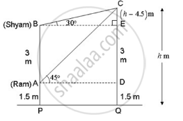There are two windows in a house. A window of the house is at a height of 1.5 m above the ground and the other window is 3 m vertically above the lower window. Ram and Shyam are sitting inside the two windows. At an instant, the angle of elevation of a balloon from these windows is observed as 45° and 30° respectively. Find the height of the balloon from the ground.