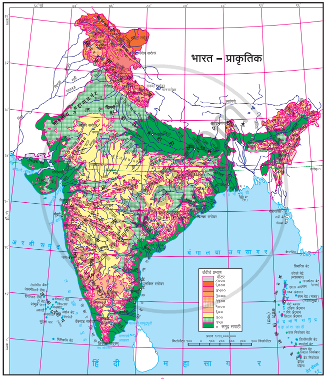 खालील भारताच्या नकाशाचे वाचन करून त्याखालील प्रश्नांची उत्तरे लिहा.