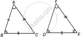 त्रिभुजों ABC और PQR में, AB = AC, ∠C = ∠P और ∠B = ∠Q है। ये दोनों त्रिभुज हैं