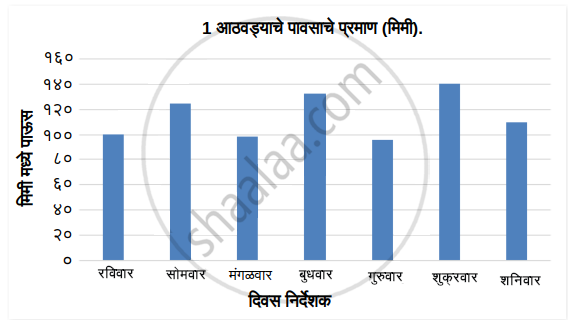 तुमच्या शाळेतील पर्जन्यमापक वापरून पावसाळ्यातील एका आठवड्यात तुमच्या परिसरात पडणाऱ्या पावसाची सलग नोंद घ्या. मिळालेल्या आकडेवारीच्या आधारे पावसाचे प्रमाण दाखवणारा स्तंभालेख संगणकाच्या आधारे तयार करा.