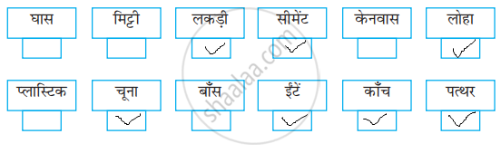 तुम्हारा घर किन-किन चीजों से बने है। उन के नाम पर '✓' का निशान लगाओ।