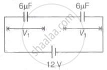 As, both the capacitors are of the same capacitance, so the potential of 12 V is equally divided in them i.e.,