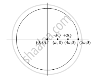 Two charges of magnitudes −3Q and + 2Q are located at points (a, 0) and (4a, 0) respectively. What is the electric flux due to these charges through a sphere of radius ‘5a’ with its centre at the origin?