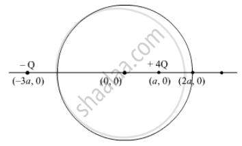 Two charges of magnitudes +4Q and − Q are located at points (a, 0) and (− 3a, 0) respectively. What is the electric flux due to these charges through a sphere of radius ‘2a’ with its centre at the origin?