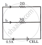 Two resistors of resistances 2 Ω and 3 Ω are connected in parallel to a cell to draw current 0.5 A from the cell. Draw a labelled diagram of the arrangement