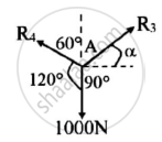 Forces R3,R4 and 1000N are under equilibrium at point A